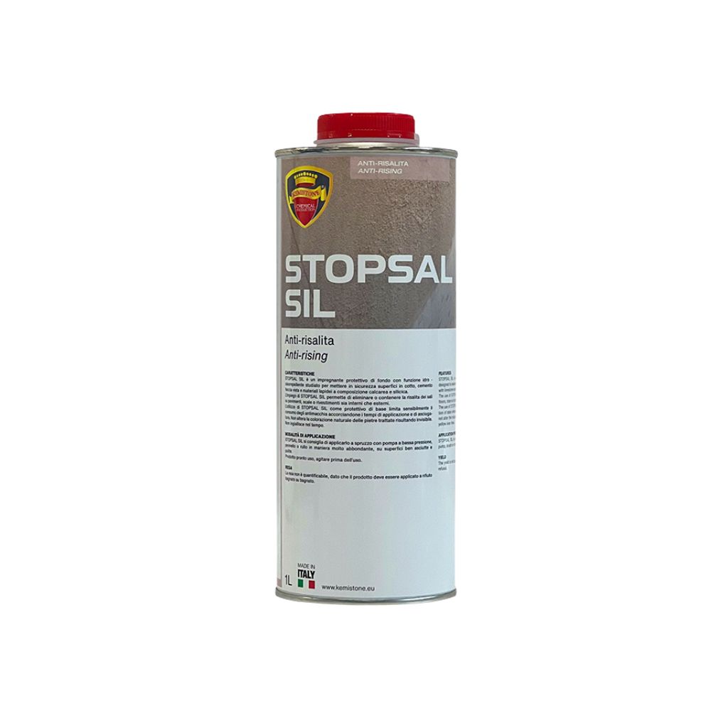 L’utilizzo di STOSAL consente il contenimento e l’eliminazione della risalita dei sali sui pavimenti.  E’ un composto trasparente e non altera la colorazione naturale delle pietre trattate.