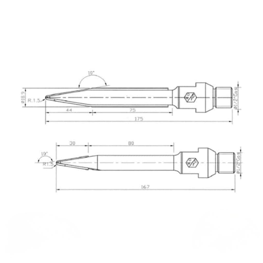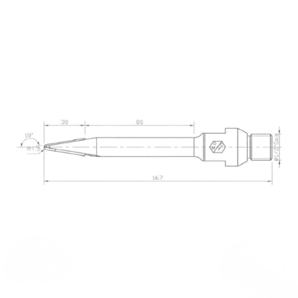 Altre caratteristiche: Il sistema di fissaggio è 1/2 gas e l’utensile è disponibile nella versione forato per il passaggio acqua interno, oppure non forato.