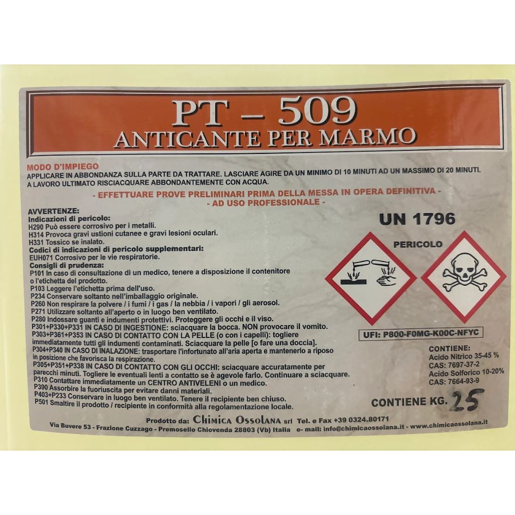 PT 509 Acido Anticante per Marmo e Pietre | Chimica Ossolana