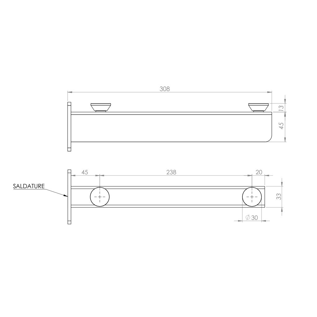 Staffa SBL30 lunghezza 30 cm| per sostegno elementi sospesi